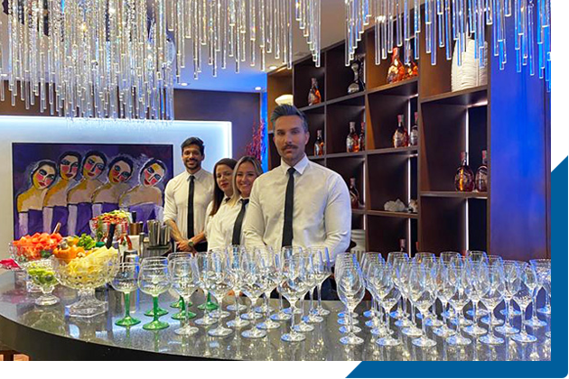 Mixologia de alto padrão, utilizando produtos de altíssima qualidade e preparação impecável.